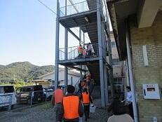 3 運動場に集合して人員確認後、大津波警報が出たという想定で屋上へ避難