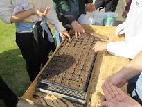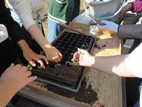 今回も、地域の農家の方々のご指導で、春キャベツの播種作業(作物の種をまく作業)を実施しました。