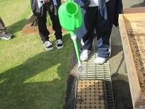 生徒が手植えしたところも、しっかりと活着していました。気温が高かったせいかモンシロチョウに葉が食べられていました。夏が長かった影響が出ているようです。