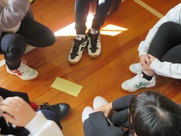 今日のセルフマネジメントの時間は、スクールカウンセラーの先生と一緒に「チームで協力することを楽しもう!」というねらいで、「ミックスボイス」というエクササイズを実施しました。