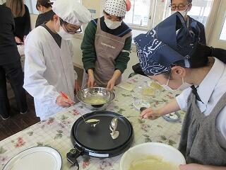 講師のご指導のもと、生地を作って、ホットプレートで焼き上げました。