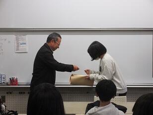 昼食後、大学教授から講義していただき、大学生活の一部を経験させていただきました。