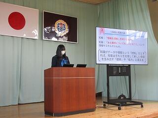 生徒それぞれが設定したテーマについて、プレゼンテーションや実演、掲示といった様々な方法で、4つのブースに分かれて発表を行いました。