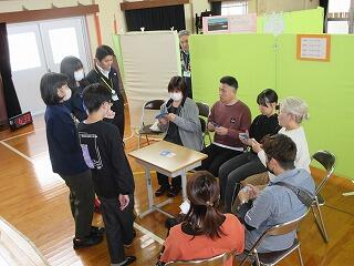 発表会の途中では、保護者の方々にも、プロジェクト学習の時間に自己理解として行った「哲学対話」について体験していただきました。