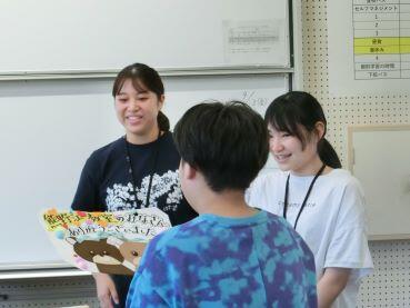 インターシップ3日目です。今日は、キャリア教育(ひなた場準備)、授業参観・支援をしていただきました。生徒たちは、ななめの関係である学生2人(インターンシップ生)と昼休みに会話をしたり、絵を描いたりとそれぞれに楽しそうに活動していました。