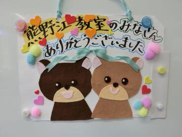 熊野江教室の生徒が先生方の似顔絵を描いてプレゼントしたり、インターンシップの先生方からもくまのフェルトの贈り物をいただきました。楽しく充実した2週間でした。ありがとうございました。