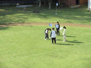 今日の体育は、グラウンドゴルフです。ルールの説明を受けて、実際にやってみました。地域の方々にもグラウンドゴルフが得意な方々もいます。練習して挑戦できるといいですね。
