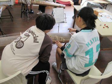 音楽の時間には、2人で1面を演奏しました。最後は、全員で気持ちを合わせて合奏も行いました。とってもいい音色でした。