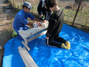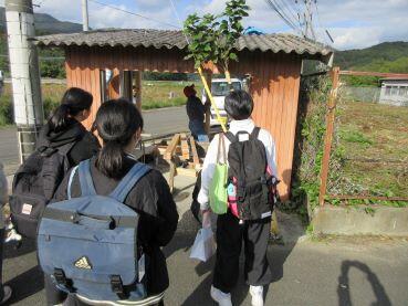 現在、生徒たちは、バス待合場所のリノベーション活動を実施しています。土台が古くなっていて、生徒だけでは修理が難しい部分は、専門の大工さんにお手伝いしてただいています。今日は、大工さんの作業風景の見学に出かけました。12月20日の完成を目指して生徒たちも作業を進めています。