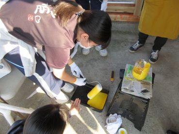 芸術(技術)+総合的な学習の時間では、バス待合場所のリノベーション活動を行っています。そこで使う流木を学校近くの熊野江海岸に探しに行きました。海岸では、流木探しと貝殻ストラップづくりで使う貝殻も探しました。流木も貝殻もたくさん見つけることができました。学校に流木を持ち帰り、高圧洗浄機できれいにしました。バス待合所のリノベーション活動のどの部分にこの流木が使われるのか楽しみにしておいてください。バス待合所の完成は12月中旬の予定です。