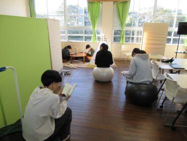 朝の時間に、それぞれが好きな場所で、好きな本を読んでいます。