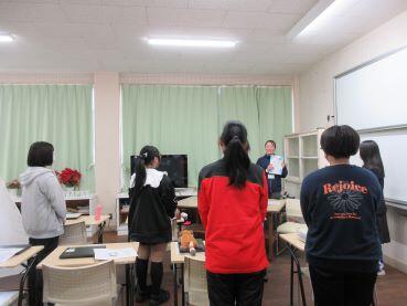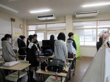 東日本大震災について学びました。当たり前が当たり前でなくなる大変さ、今をしっかり生き抜くことの大切さについて考えました。最後は、東北の方角に「亡くなられた方のご冥福を祈る」とともに、「1日1日を大切に生きていくことを誓い」全員で黙とうをしました。