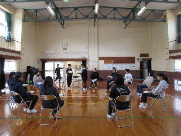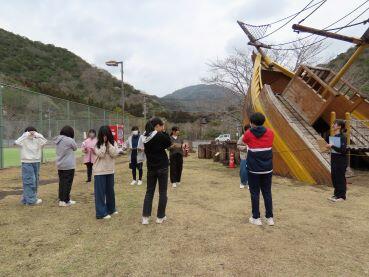 午前中は学校で、1・2年生が3年生を送る会を企画・運営したり、3年生がお別れ会を企画・運営しました。天候にも恵まれ、生徒自身の企画したゲームを楽しみました。午後は、バスで移動し、ケビンに宿泊です。