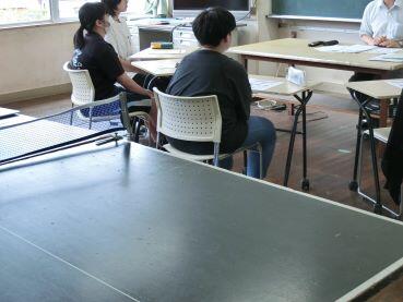 インターシップ3日目です。今日は、キャリア教育(ひなた場準備)、授業参観・支援をしていただきました。生徒たちは、ななめの関係である学生2人(インターンシップ生)と昼休みに会話をしたり、絵を描いたりとそれぞれに楽しそうに活動していました。