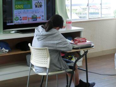 朝の時間を利用して、宮崎県子どもSNS相談について説明しました。
