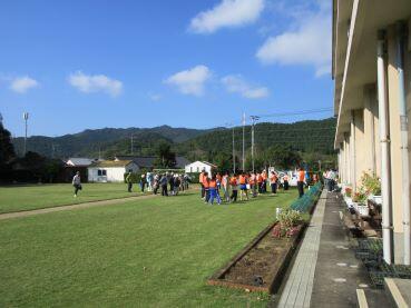地震後の津波を想定した避難訓練を実施しました。地域の方々も一緒に訓練を実施しました。最終避難場所は、学校の屋上です。津波避難三原則「想定にとらわれるな」「最善をつくせ」「率先避難者たれ」についても学びました。