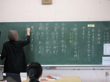 一斉授業では、このような形で授業が展開します。熊野江教室では、一人一人に応じた個別学習の時間にも力を入れていますが、生徒の実態に応じた一斉授業も実施します。各教科の特性を生かし、ゆっくりしたペースで生徒に合わせた一斉授業を展開します。この学校に来れば何かが分かる「学ぶ喜び」「わかる喜び」を大切にして授業を進めていきます。