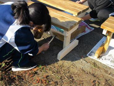 天気にも恵まれ、バス待合所のリノベーション活動を実施しました。地域の方々には、待合所内の装飾のお手伝いをしていただきました。また、1か月以上前からこの日のために準備をしていただいている県女性建築士会の方々には、現地で材料の切断や塗装を指導していただきました。生徒たちも、最初は慣れない作業に苦戦していましたが、時間が経過するごとにスムーズに作業を進めることができるようになってきました。最後の振り返りでの生徒感想は、「リノベーションの作業はとても大変でしたが、ベンチをつくりあげたときの達成感がすごく、楽しく作業をすることができました。」「みんなと協力してリノベーションできたので楽しかったです。」「ものづくりの楽しさを知りました!」「普段あまりかかわらない人とも関われて楽しかったです。」「地域の方々にも喜んでもらえるような場所にしていきたいと思います。」・・・今日の作業で20%進みました。12月末の完成に向けて、進めていきます。