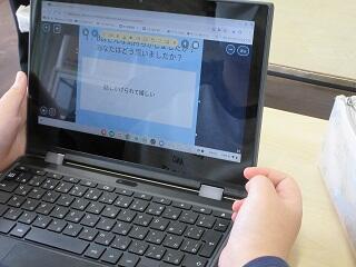 本教室ならではの授業の一つである「セルフマネジメント」の時間は、朝の時間や帰りの会の時間に位置付けてあり、道徳と特別活動の時間の合科の時間です。具体的には、「感情のコントロール」「ストレスマネジメント」「認知の歪みの修正」等について学べる時間です。今朝は、ソーシャルスキルトレーニングを実施しました。内容は、ノンバーバルコミュニケーションです。自分の気持ちは、言葉で伝えるだけでなく、表情など言語以外でも伝わるということを学びました。