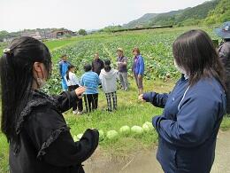 本日は、熊野江教室近くにあるキャベツ畑で春キャベツ収穫体験を行いました。