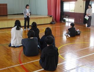 今回は、新しい環境で初めて会話を交わす際に、どんなことに気を付けたらよいかをモデル役の先生の演技を見ながら考えています。