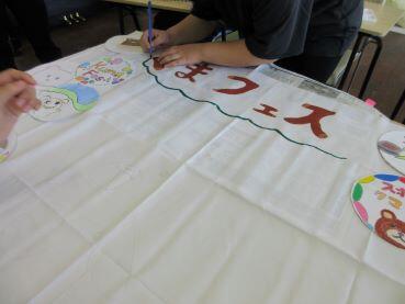 5/14(「くまフェス」の「のぼり旗」準備中)