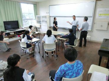 文科省職員の方が、本校に参観に来られました。研修の一環として、多様化学校での生徒の様子を見ていただきました。休み時間には、生徒の中に入っていただき、活動に参加していただきました。生徒たちも、楽しく活動をしていました。
