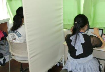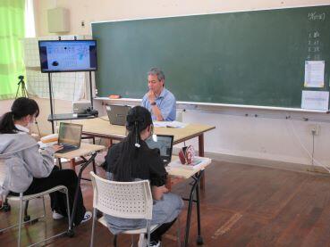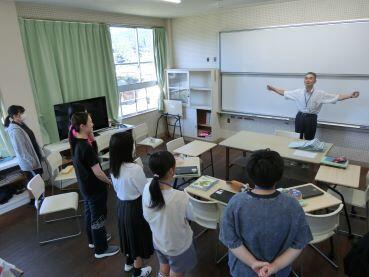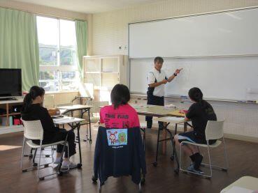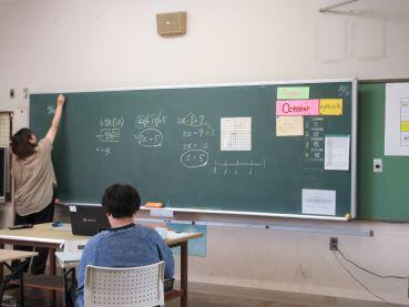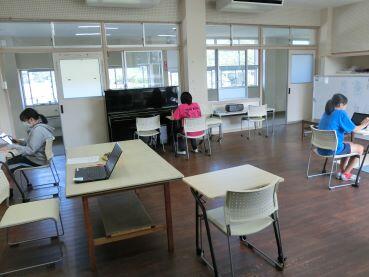 一斉授業では、このような形で授業が展開します。熊野江教室では、一人一人に応じた個別学習の時間にも力を入れていますが、生徒の実態に応じた一斉授業も実施します。各教科の特性を生かし、ゆっくりしたペースで生徒に合わせた一斉授業を展開します。この学校に来れば何かが分かる「学ぶ喜び」「わかる喜び」を大切にして授業を進めていきます。