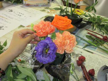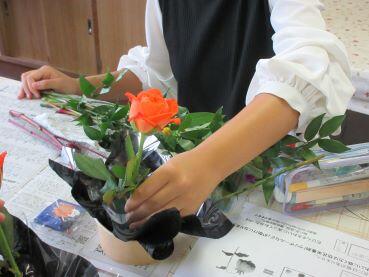 花や緑に親しみ、育てる機会を通して、やさしさや美しさ、花を飾る喜びを感じることを目的に、花育の授業が実施されました。説明を聞いた後に、それぞれ個人でフラワーアレンジメントに挑戦しました。講師は、岡田花店の方です。それぞれ生徒たちは、イメージをふくらませながら素晴らしい作品を完成させました。