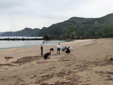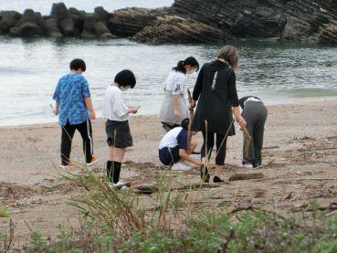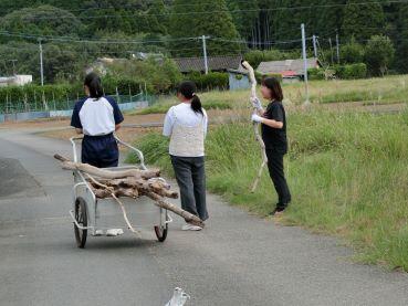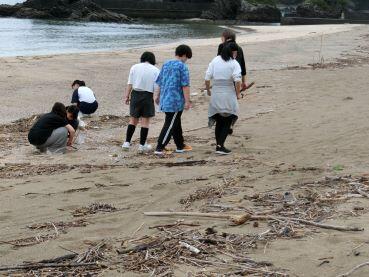 芸術(技術)+総合的な学習の時間では、バス待合場所のリノベーション活動を行っています。そこで使う流木を学校近くの熊野江海岸に探しに行きました。海岸では、流木探しと貝殻ストラップづくりで使う貝殻も探しました。流木も貝殻もたくさん見つけることができました。学校に流木を持ち帰り、高圧洗浄機できれいにしました。バス待合所のリノベーション活動のどの部分にこの流木が使われるのか楽しみにしておいてください。バス待合所の完成は12月中旬の予定です。