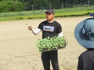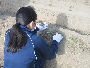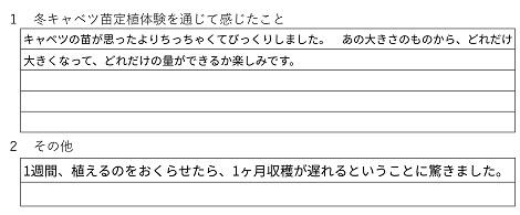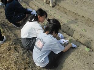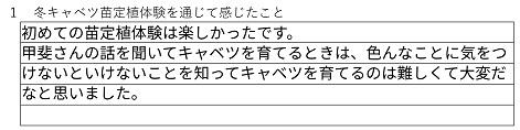 今日は、「冬キャベツ苗定植」を地域の方々のご指導のもと、体験させていただきました。