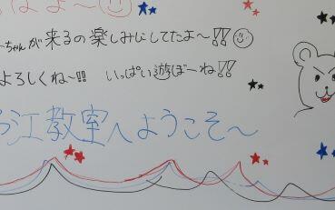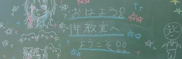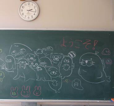 在籍する生徒たちから、後期入室者のみなさんへのメッセージを各学年の黒板に描きました。