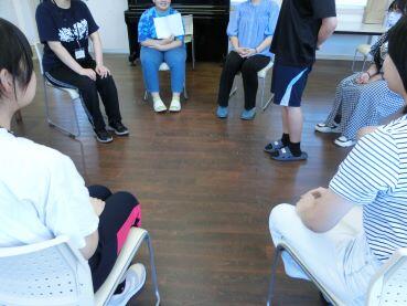 今日のセルフマネジメントの時間(9:00~9:10)は、「エクササイズ名:アウチでよろしく!」を実施しました。ねらいは、「人さし指と人さし指のスキンシップと、アイコンタクトを通じて親和的な出会いをつくる」です。1分間、話をせずに目も合わせずに自由歩行する活動と、1分間、アイコンタクトを取りスキンシップを図りながら自由歩行する活動を実施し、2つの体験を比較しながら感じてもらいました。生徒のf振り返りでは、「目を合わせて、会話をすると同じ1分間でも短く感じた。」「人とコミュニケーションを取ることは大切だと感じた」「これからは、相手の目や口を見てしゃべろうと思いました」「誰とも目を合わせなかった時間の流れが遅くて面白くなかったけど、アウチをした時の時間の流れが早く面白かった。この状況が今の熊野江教室の雰囲気を表していると聞いて納得した」と、それぞれの様々なことを感じていたようです。10分間でもいろいろなことを感じ・考える時間になりました。