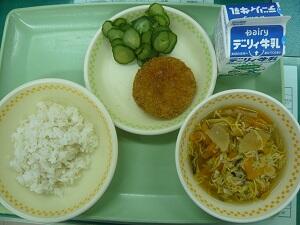 麦ご飯 牛乳 鶏飯 彩り野菜のミンチカツ そえきゅうり