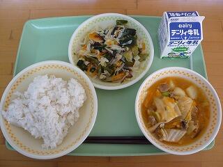 ✿今日は、八代中学校のリクエスト献立でした。主食・主菜・副菜がそろっていて、栄養バランスもばっちりです。 ぜひ家庭での食事の参考にしてください。