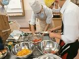 ✿今日は、ハヤシライスでした。ハヤシライスは、ハッシュドビーフとも言われ、牛肉を使いますが、今日は豚肉を使いました。豚肉のハヤシライスもさっぱりしていて美味しかったです。ハヤシライスは、玉ねぎも多く使います。玉ねぎは、しっかり熱を通すことで砂糖の50倍以上の甘味がでてきます。疲れをとったり、血液をさらさらにするなどの効果もあります。和洋中、どんな料理にも合うので、給食でもほぼ毎日使っています。