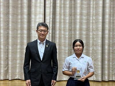 賞を受賞し、県庁で行われた授与式で河野知事より授与されました。