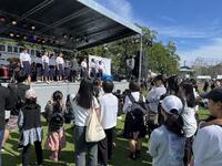 お昼からは、本庄中音楽部と木脇中吹奏楽部の合同演奏が行われ、多くの観客の皆さんを魅了していました。