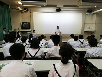 さて、今日の全校集会ではカウンセラーの有木先生にお話をしていただきました。夏休みも残り少なくなり、いろいろな悩みをもつ生徒が多いことから、「悩みは人間だれもが持っていること。一人一人の心の温度計は、日によって、あるいは時間帯によっても変化するので、自分の気持ちをみつめるとともに、周りの友だちや親、兄弟、先生方に勇気を出して相談することが大切。きっと、みんなは君の話をしっかり聴いてくれるし、話すだけでもずいぶん気持ちが楽になります」という内容でした。昨年から生徒たちはピア・サポート活動に取り組み、友だちの話をしっかり聴くことの大切さを勉強しています。話をする、相談する勇気をもってほしいと心から思います。