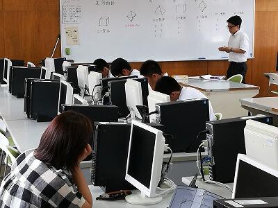 文系教科、理系教科、技能教科の3つの分野で授業提供をしていただき、授業終了後に授業研究会を行いました。生徒達は、たくさんの先生方が授業参観に来られてので少し緊張したかも知れませんが、熱心な授業態度で臨んでいました。