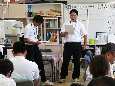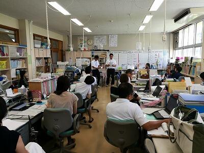 夏休みも残すところ少なくなってきました。今日も学校では人権教育等の職員研修を実施しました。 さて、明日からサマースクールが始まりますので、再度日程を確認していただきますようお願いします。 期日 8月24日(木)、25日(金)、28日(月)、29日(火) ~ 8:00 通常通り登校 8:05~ 8:10 健康観察 8:20~ 9:10 1校時 9:20~19:10 2校時 10:20~11:10 3校時 11:20~11:30 帰りの会