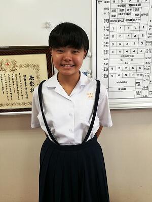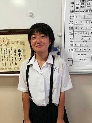 リーダーになったからには、リーダーとして責任をもって一生懸命声を出して頑張りたいと思います。また、3年生にとっては最後の体育大会になるので、1年生のリーダーの中で何事も1番に頑張りたいと思います。
