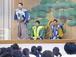 さて、学校では朝から教職員のいろいろな研修が行われました。人権教育、特別支援教育、道徳教育、主題研究・・・。この中の道徳教育に関する研修では「特別の教科 道徳」の実施に向けて説明があった後、初任者である吉村教諭と岩本教諭二人による寸劇がありました。道徳科のポイントとなる内容を盛り込んで台本をつくったということで、熱演でとてもわかりやすかったです。