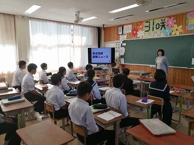 本日は、地区中体連秋季大会のバドミントン競技団体戦が行われました。 男子優勝、女子準優勝と素晴らしい結果でした。 明日は、男女とも個人戦が行われます。団体戦の勢いに乗って、頑張ってください。健闘を祈ります。 また、本日の4校時、3年生の道徳では、先日行われた、がんに関する教育普及推進協議会授業研究会を受けて、がんにより余命半年を宣告されて、がんと闘い、克服した、長友明美さんにきていただいて、どのようにしてがんを克服したのか、話をしていただきました。 がんと宣告されたとき、絶望的になったり希望を失いかけたりするときがある。でも、落ち着いてじっくりと見回すと、あちこちに闘病のとっかかりが見つかります。がんを前にして、何もしないであきらめるか、それとも最初のとっかかりを見つける努力をするか、勇気を出してチャレンジしてみると、いろいろなアイディアが出てきて、よりよい方法が見つかると思います。そんな実体験に基づいた話をしてくださいました。生徒達も興味を持って、真剣に聞いていました。