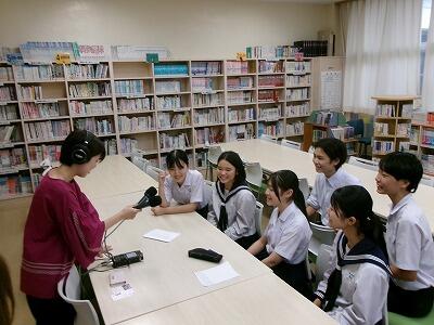 今日(8日)は、アナウンサーの奥山様、山下様が来校され生徒会6名とPTA木下会長への取材が行われました。取