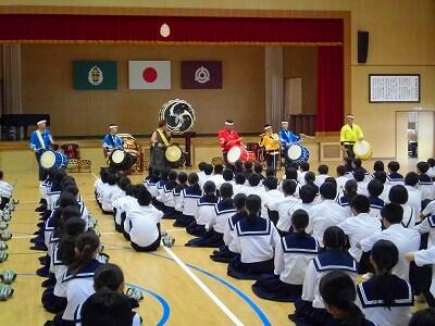1日(木) 鑑賞教室⑤⑥ 小中合同あいさつ運動