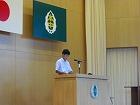 また、今日は、7月22日~7月24日に行われる国民体育大会九州ブロック大会にボーリング競技に出場する3年生の菊池春華さんの紹介も行い、生徒全員で激励の拍手をしました。菊池さん県の代表として頑張ってください。
