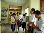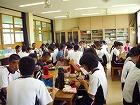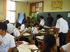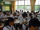 昨日は、国富町教育研究所の検証授業が行われ、1年3組の理科の授業を押方先生が行われ、町内の研究所の先生方が来られました。今日は東諸県郡特別支援教育研究会の授業研究会が本校であり、1年5組の授業を鳥枝先生が行われました。今日は郡内の9つの小中学校から10名ほどの先生が参加され熱心に授業を参観され、研究会をされていました。5組の生徒たち2名も緊張気味でしたが一生懸命に授業を受けていました。