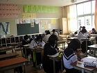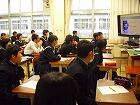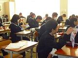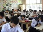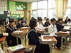 本校では、授業1分前に着席し、チャイムと同時に「立腰」の姿勢をとり気持ちを整えて授業に臨みます。生徒全員が集中して授業に取り組むための約束ごとです。