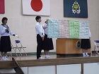 また、町民大会では町こども育成連絡協議会の活動事例発表が行われ、ジュニアリーダーとして活動している瀬尾宙大くん(3年)、管友喜乃さん(2年)の紹介もありました。本校生徒がいろんなところで活躍しています。これからも頑張ってください。